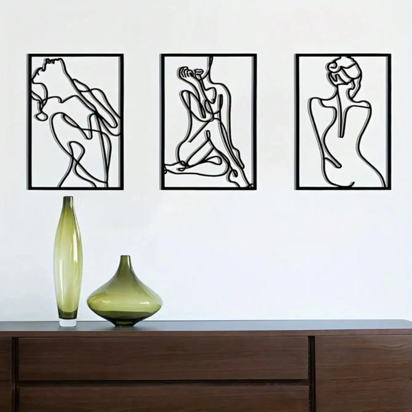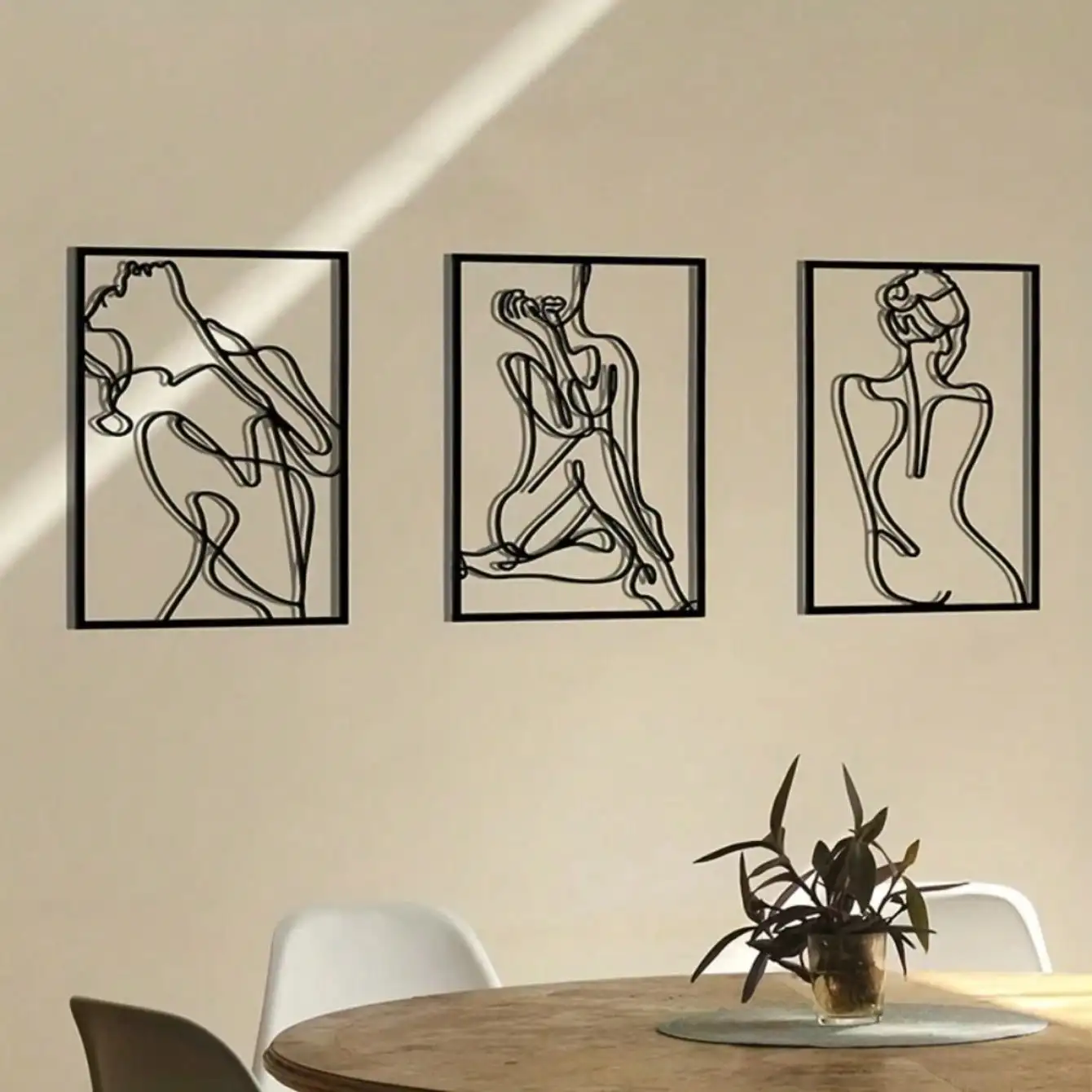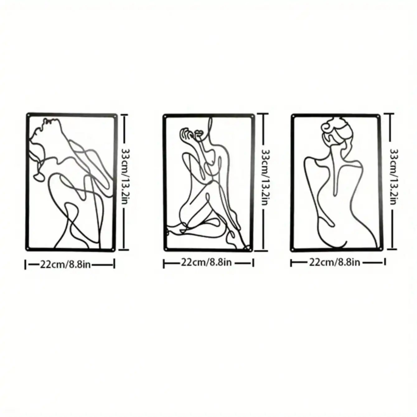 Includes three unique abstract woman line designs that can be arranged together as a statement piece or displayed separately for a custom look.