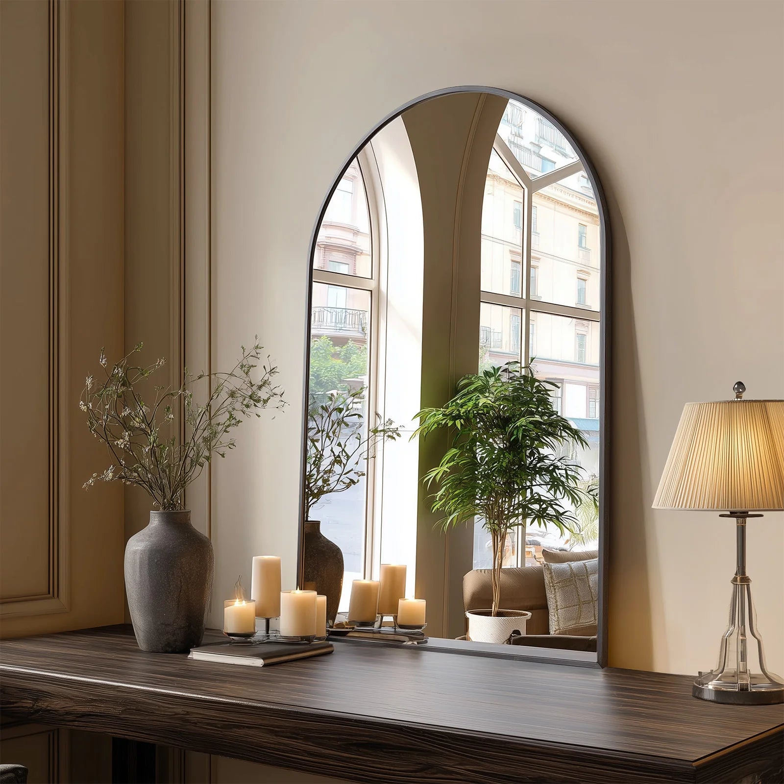 Elevate your space with the JHK 26"x38" Arched Metal Framed Wall Mirror, a modern yet timeless addition to any room. Featuring a sleek arched design and durable metal frame, this mirror brings elegance and depth to bathrooms, bedrooms, entryways, or hallways. Whether used for practical reflection or as a decorative statement, it blends seamlessly with both contemporary and classic interiors. Easy to hang and built to last, it's the perfect mirror for everyday use and lasting style.