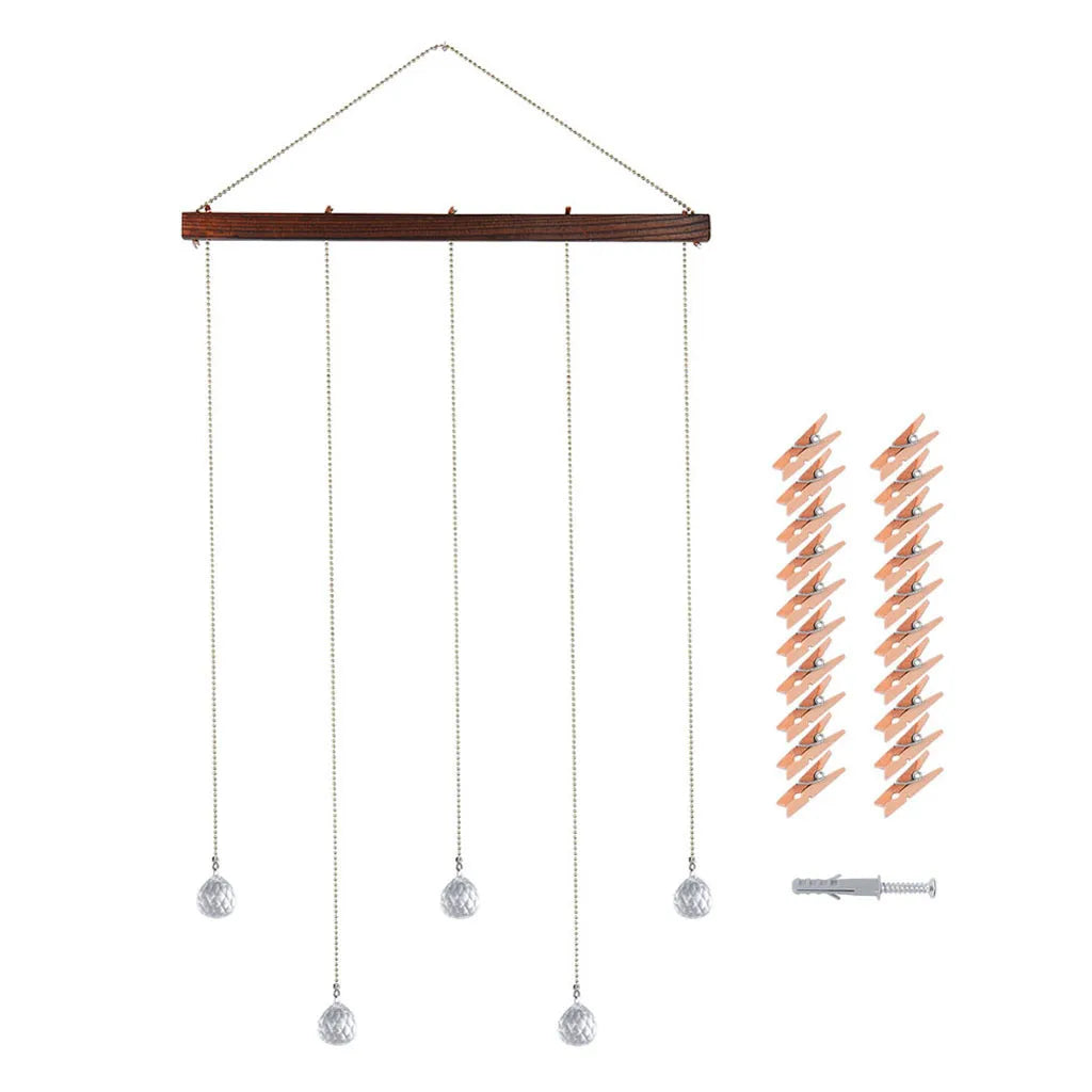 Showcase your favorite memories with the DIY Hanging Photo Display Frame. Crafted from natural wood and golden metal chains, this rustic wall-mounted photo holder offers a creative way to personalize your home. Its transparent crystal balls and wooden clips add charm and texture, making it a beautiful accent for bedrooms, living rooms, or hallways.