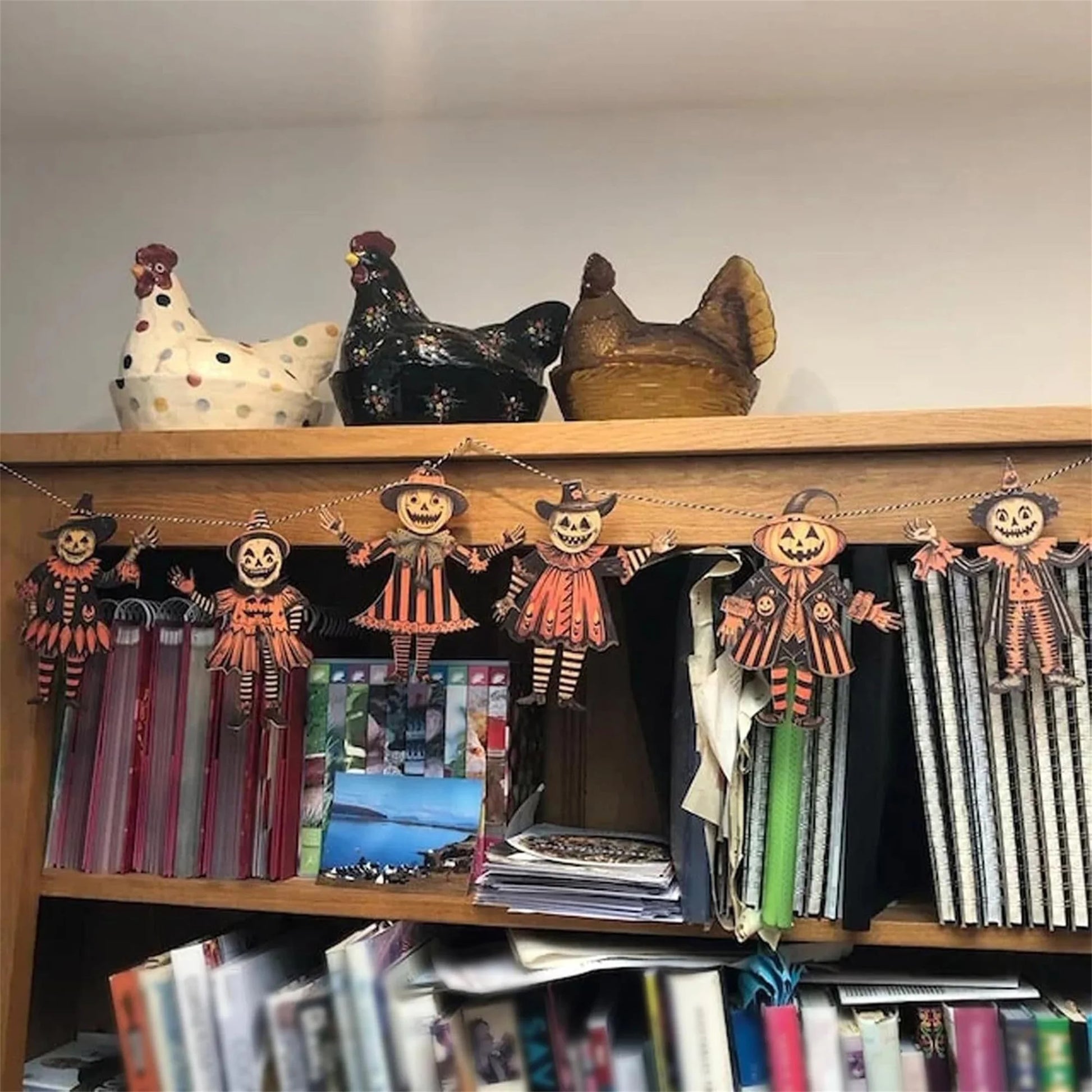 Retro Halloween Wooden Garland – 6PCS Jack-o’-Lantern & Witch Banner