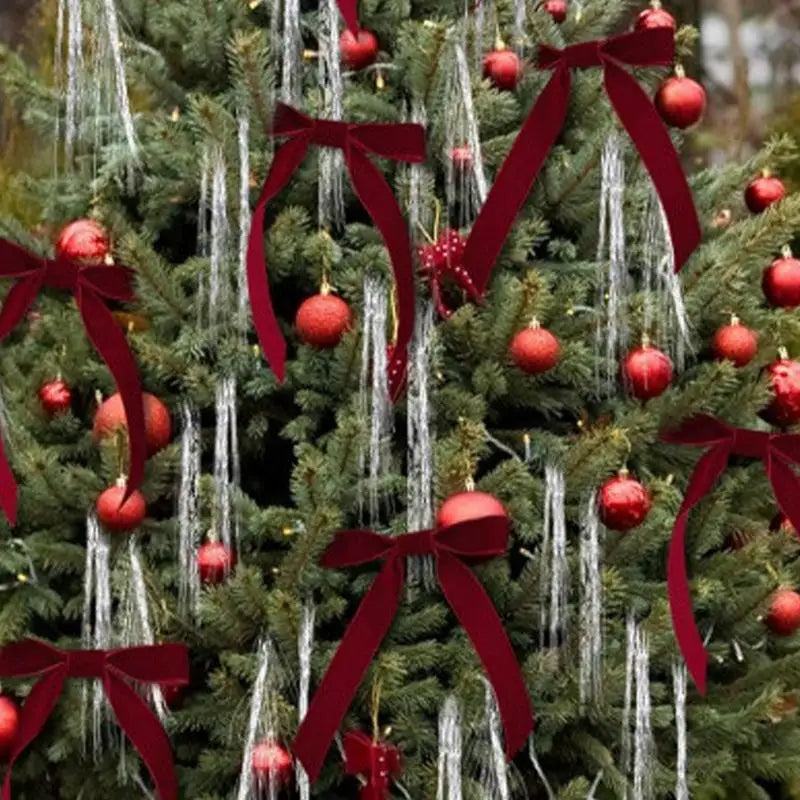 Elegant Velvet Finish: Crafted from soft, premium cloth with a velvet texture, these bows add a luxurious and festive look to any Christmas decoration.